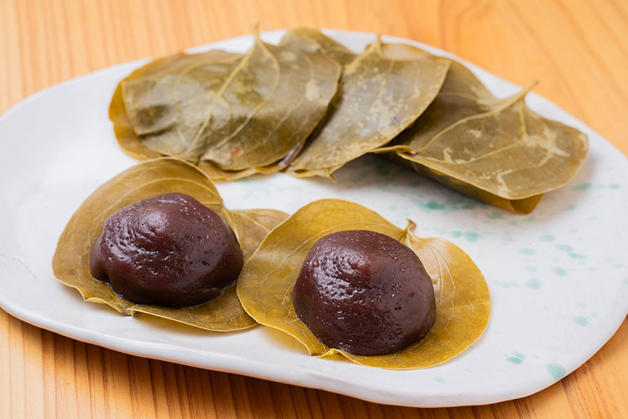 塩漬けした「かからん葉」を使用した、もちもち食感のお団子です。